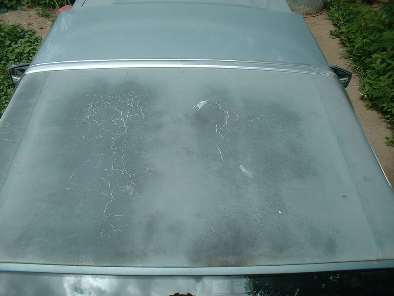 ok... you dont have the coach rear window with the fiberglass under the vinyl. you have the large window so it will be a lil better for removal like i pictured. you will need a screw driver for door trim removal where vinyl meets the door areas, and be careful with rear window trim, it tends to bend when looked at funny. the side interior pieces need removed by rear dash to access nuts holding side trim on and same with ceiling in the car. the side lights on the car are easily removed by popping the chrome pieces off above and blow the plastic ligh and then it is held with 2 screws. it isnt that hard to do, but the prep work is worst. you will need a couple crappy brushes and a can or 2 of aircraft stripper to get the adhesive crap off the roof. after brushing the stripper on the roof, let it sit for a lil bit and go back with putty knife and trash can to scrape and throw away the stuff being removed. your picture of the car posted will be pretty much like the photos above ofr some of the stuff. dont be surprised if you find rust or bad seams where the factory didnt care because it was just getting covered....