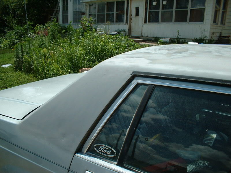 Now there is a detailed answer for you 89, (with pics). So which one did a 1989 Grand Marquis have? Either way, you found the man with first hand experience. I've taken two off in my life. One was a '86 Riviera and the other was a '80 something Cutlass Supreme(adhesive nightmare). The Riv had like a fabric/rag type top with a big piece of sheet metal underneath that was not even welded to the roof or attached to the coach top. Weird. But the rear window never looked right after that. We found some big pieces of trim off something at the junkyard and custom fit them to minimize the countersunk/recessed look to the window.
